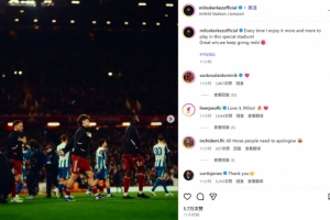进球的琼斯也现身评论区并留言“感谢你”,而利物浦官方账号同样留言鼓励“很棒!米洛斯”。