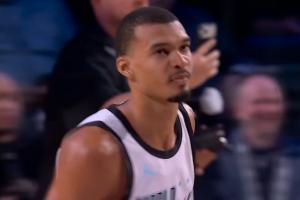 体育资讯02月16日讯 全明星正赛的世界队vs条纹队,文班燃尽自己!