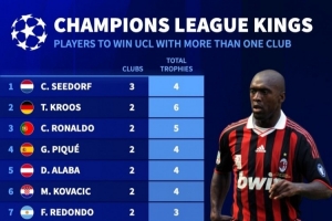 德转盘点随不同球队夺欧冠球员:西多夫、克罗斯、C罗、皮克在列