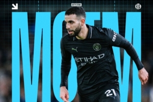 送出助攻,曼城官方:艾特·努里当选1-0小胜利兹联队内最佳球员