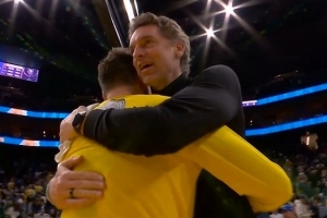 都是老朋友!东詹赛后分别与大加索尔&追梦&库里兄弟拥抱热聊