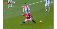 比赛第36分钟,达洛特拼抢中踩中镰田大地脚面,被主裁判出示黄牌警告。场上比分曼联0-1水晶宫。