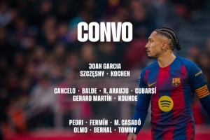 巴萨国王杯名单:亚马尔、奥尔莫、拉菲尼亚在列,莱万因伤缺席