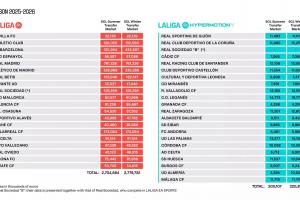 体育资讯03月03日讯 西甲官方公布了冬窗结束之后西甲各球队的最新工资帽,皇马、巴萨、马竞排名前三。