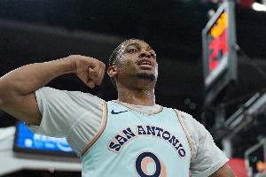 上半场,马刺两位球员凯尔登·约翰逊和福克斯均有出色发挥,凯尔登15分钟9投7中,三分5中3、罚球1中1拿到18分5篮板2助攻,正负值+14;