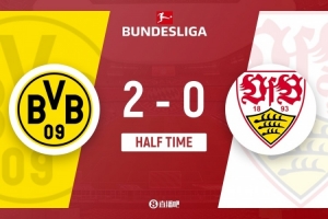 半场-多特蒙德2-0斯图加特 埃姆雷·詹点射破门拜尔补射