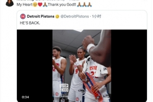 艾维母亲转发活塞赛后庆祝艾维复出视频:我的小心肝!感谢上帝!