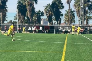 刘凯源代表比利亚雷尔U16A队首发,打进个人本赛季第二粒进球