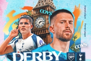 热刺发布北伦敦德比海报:维卡里奥、范德芬、西蒙斯、特尔出镜