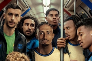 巴萨客战切尔西海报:两队球员乘坐伦敦地铁,拉什福德、库库出镜
