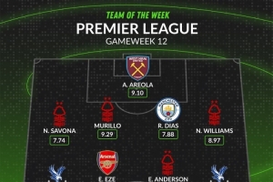 WhoScored英超第12轮最佳阵容