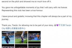 在热情的球迷们的陪伴下,我在这支出色的球队度过了两年时光,在这座城市我有了家的感觉,但我的津门虎生涯将告一段落。
