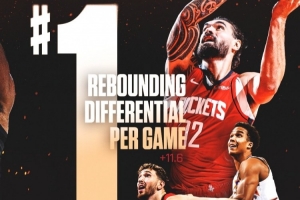 火箭官方晒数据:球队场均净胜对手11.6篮板 联盟第一
