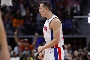 活塞球员邓肯·罗宾逊本场比赛手感不太理想,第一节三分6投全铁,最后一节才找到三分手感,不过他最后绝平三分被帽。