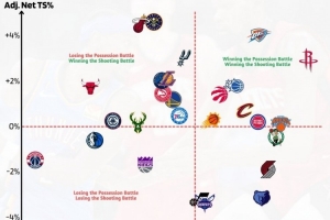 赛季至今出手终结效率榜:火箭出手数优势第1 掘热雷效率优势前三