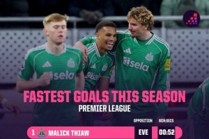 本赛季英超最快进球榜: