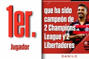 据ESPN统计,达尼洛是首位获得2次欧冠冠军+2次南美解放者杯冠军的球员,他曾随皇马2次问鼎欧冠,随桑托斯、弗拉门戈获得解放者杯冠军。