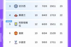 一战升6名!曼联从第12蹿升至第6,仅落后第四的桑德兰1分