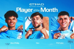 曼城11月队内最佳候选:奥赖利、尼科·冈萨雷斯、福登