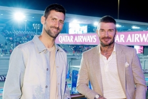 贝克汉姆观战F1卡塔尔大奖赛,社媒晒与德约科维奇、内维尔合照