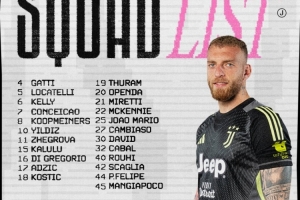 尤文意大利杯名单:伊尔迪兹、孔塞桑、戴维在列,佩林、DV9缺席