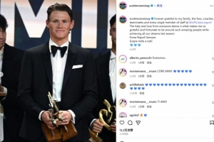 麦克托米奈社媒晒照纪念赢得AIC赛季最佳:感谢大家的帮助和爱