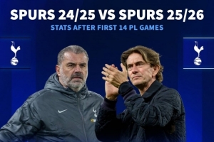 弗兰克执教热刺英超14轮拿19分,比上赛季同期还少1分