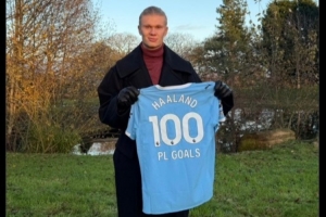 史上最快英超百球!哈兰德晒英超百球曼城纪念球衣