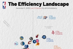 近10战攻防:雷霆防守独一档 火箭防守&净效率第2 绿军进攻第1