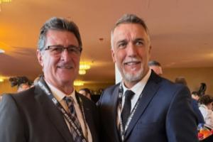 两大阿根廷传奇!巴蒂现场看世界杯抽签和肯佩斯合影