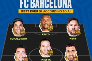 AI评巴萨队史最佳阵:梅西、小罗、埃托奥三叉戟,哈维、小白在列