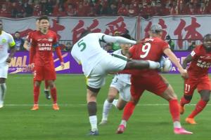 恩加德乌飞踢卡多索腰部,裁判出示黄牌。