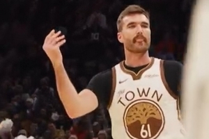 在本场比赛中,斯潘塞在命中一记三分后朝勇士替补席比出数钱的姿势庆祝,因伤缺阵的库里转发了这个视频。