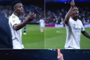 当恩德里克被罚红牌时,维尼修斯显得非常愤怒,他直接朝裁判说道:“再来点,再多来点,多出几张红牌。把所有人罚下,把我们都罚下!”