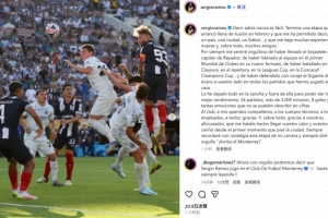 拉莫斯社媒告别蒙特雷:34场打进8球,我会永远怀念这段职业生涯