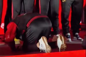 行大礼!重庆铜梁龙冲超庆典,韩国主帅张外龙向球员磕头致谢