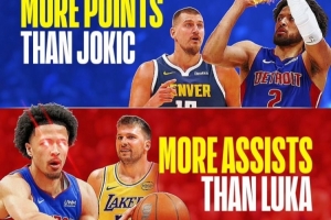巨星崛起!CC场均得分>约基奇&场均助攻>东契奇 活塞还东部第1
