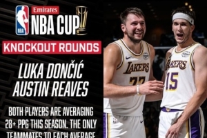 历史上单赛季场均同时达到28+分的队友组合仅有:2000-01赛季的奥尼尔(28.7分)与科比(28.5分),以及1961-62赛季的埃尔金·贝勒(38.3分)与杰里·韦斯特(30.8分)。