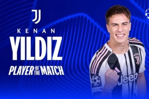 送出1次助攻!官方:伊尔迪兹当选尤文2-0帕福斯的全场最佳球员