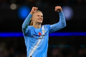 哈兰德连续4场欧冠客场破门,为曼城队史第三人