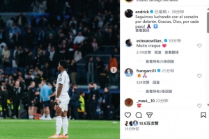 本场比赛恩德里克替补登场,他也在个人社媒晒出本场照片,配文写道:“我们将继续全力以赴地战斗。感谢上帝一路以来的指引!”