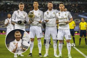 效力皇马期间,本泽马曾在卡卡、C罗和莫德里奇三位金球先生身边踢球。