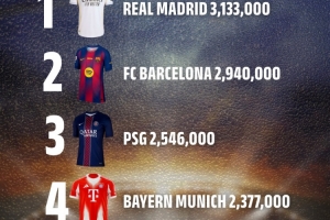2025年全球球衣销售排行:皇萨前二,迈阿密第五,利雅得胜利第十