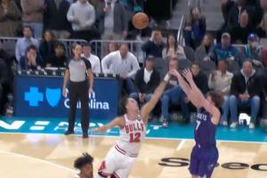结束啦!克尼佩尔弧顶三分造成扎克·科林斯犯规 公牛挑战成功!