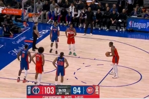 尽显暴力美学!!白魔底线突破腾空 折叠拉满弓双手炸裂暴扣!