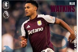 沃特金斯达成200次英超出场里程碑,此前贡献78球36助攻