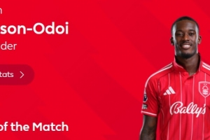 2球1助攻,官方:蓝军旧将奥多伊当选诺丁汉森林3-0热刺全场最佳