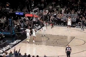 三个人看着人家扣!篮网三线快攻 克拉克斯顿双手大猩猩暴扣!