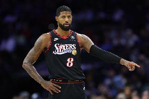 上半场,76人前锋保罗·乔治高效发挥,打了14分钟11投5中,三分5中4、罚球3中3砍最高17分外加1助攻1盖帽,正负值+5。