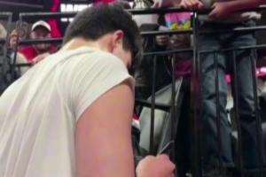 小球迷这个兴奋哟!杨瀚森赛前给小男孩签名 对方惊喜大呼哦买噶~